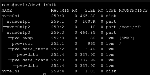 Via le shell Proxmox (ou en SSH), on peux aller vérifier si le disque est bien détecté. C'est le cas ici :