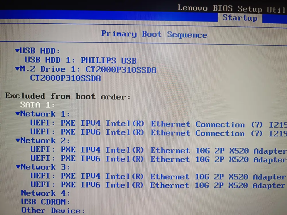 Première étape, désactiver le Secure Boot (Onglet Security en général). Ensuite, on choisi le bon ordre de boot dans la partie Startup (Primary Boot Sequence).