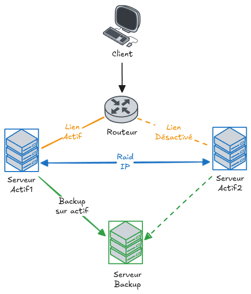 - deux serveurs actifs (Actif1 et Actif2)
